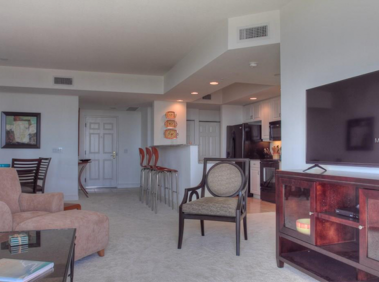 STILL AVAILABLE FOR SEASON 2121! Golfers paradise! Be the first to enjoy the Florida lifestyle in this brand new, two bed/two bath plus den condo in the exclusive gated golfing community of Riverstrand. This condo sits right on the golf course and also has a view of the water. Relax in style and watch TV on the 60″ flat screen from the plush comfort of your king sized bed! The second bedroom also has a large flat screen TV and plush new bedding. The den has a full size leather sleeper sofa and can be used as a third bedroom. The living/dining area is a spacious open plan that allows for entertaining, comfort and privacy. The Kitchen features granite countertops and stainless appliances. Everything new! With two screened lanais, there is also room for entertaining outside and taking in the golfing action out on the course. Off street driveway parking. This unit also offers a membership transfer that will allow you to golf on this private course and also use all of the amenities this desirable community has to offer. have some fun in the warm Florida sun this season! Garage not available. Owner use only.